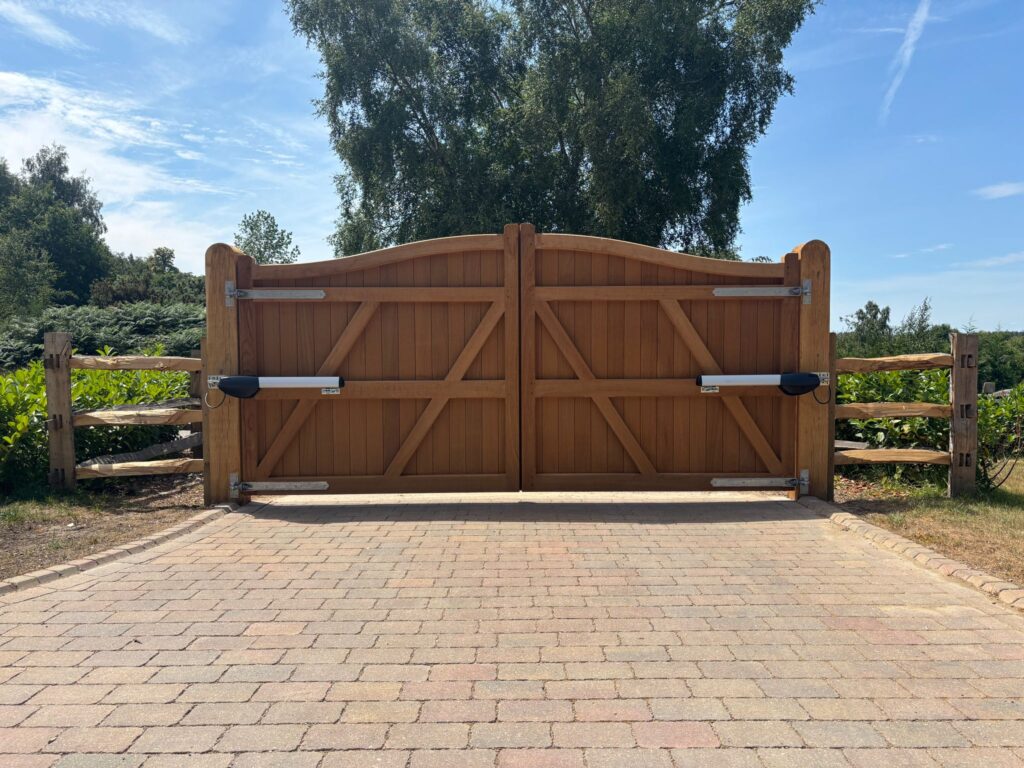 Are you looking for automated Iroko swan top gates installation? We offer a wide range of electric gates, including swing gates, sliding gates, wooden gates, aluminium gates, wrought iron gates, and 5-bar Bar Gates. Our experienced team is dedicated to providing bespoke solutions unique to your property.